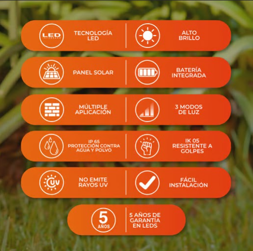 Te justaría resaltar en la noches tu jardín, este producto es para ti. Posee paneles solares para tener iluminación autosuficiente y renovable.